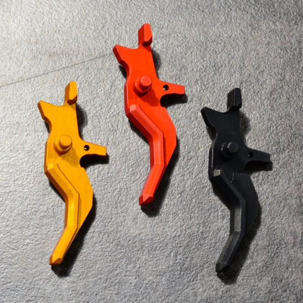 Mancraft 電動ガン & HPA M4/M16 用カスタム CNC トリガー。強化アルミニウム合金製で、3色(ハードアルマイト)